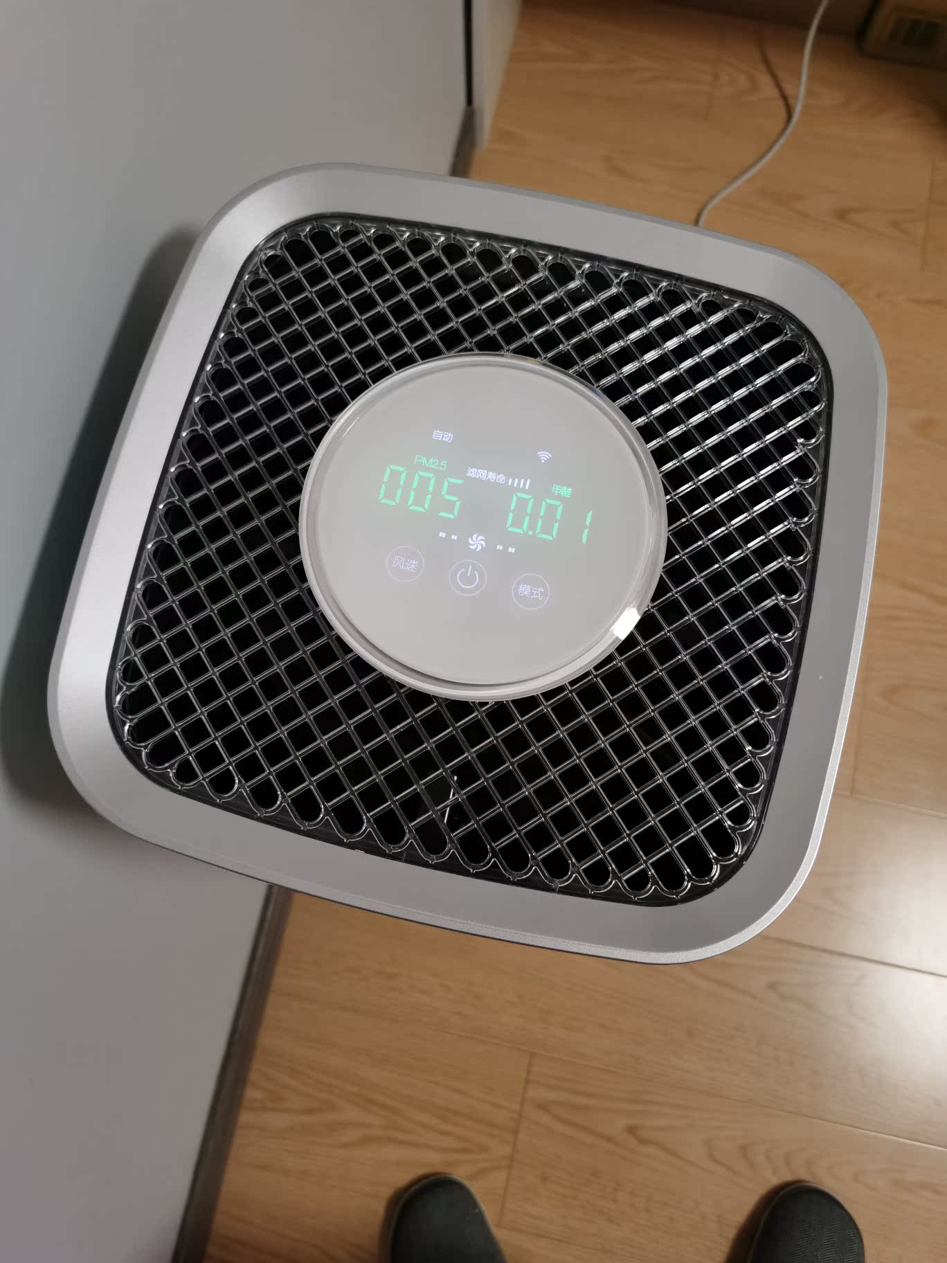 早上收到货就迫不及待的打开用了,我这崇尚颜值第一的人,和我的新家也很搭,爱了,对比了很多,最终选择这款是因为它不但颜值高,还带除醛功能,很多净化器都是吸附,我怕二次污染,看来没选错,它还会显示甲醛数值,太喜欢这个了,而且声音也很小,就坐在旁边都不觉得吵